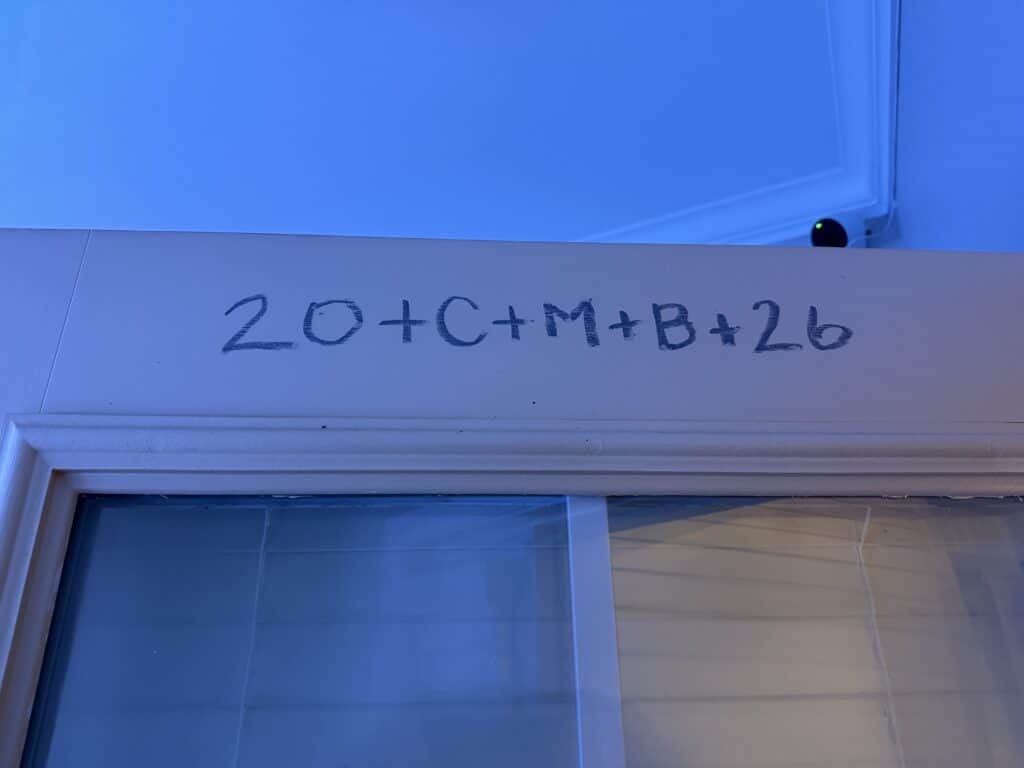 The traditional inscription bares a dual meaning and should read 20+M+C+B+26 which translated means the year 2026 and the initials of the three magi, C-Caspar, M-Melchior, B-Balthasar, and the Latin phrase “Christos Mansionem Benedicat” or “May Christ bless this house.”